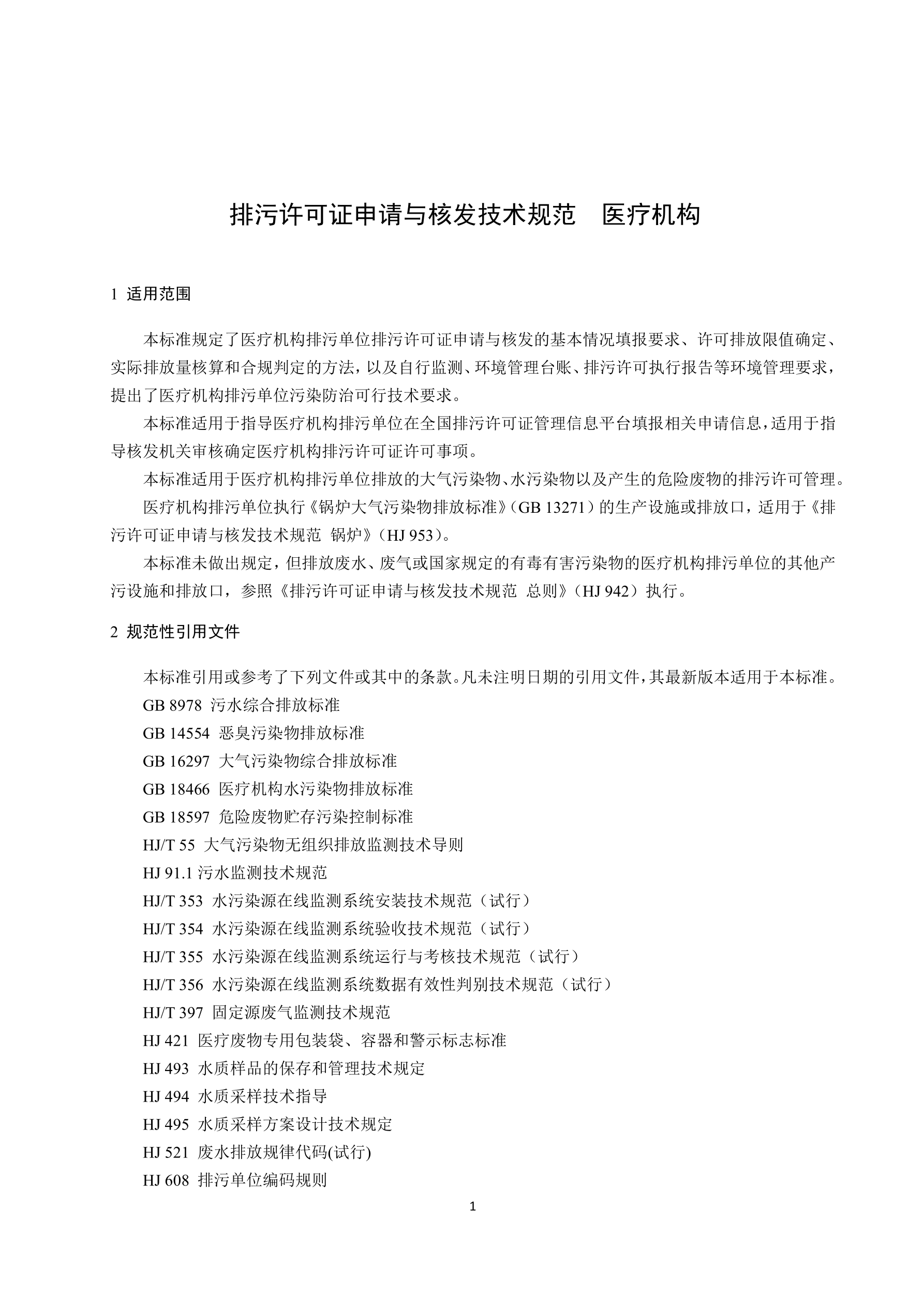 排污許可證申請(qǐng)與核發(fā)技術(shù)規(guī)范(醫(yī)療機(jī)構(gòu))